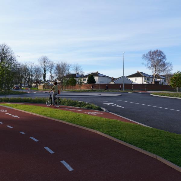 This scheme will provide safe pathways and segregated cycle lanes so that people of all ages and abilities can avail of walking and wheeling for local journeys to school, sport and shopping. The route will also connect to public transport routes by bus and train for longer journeys.