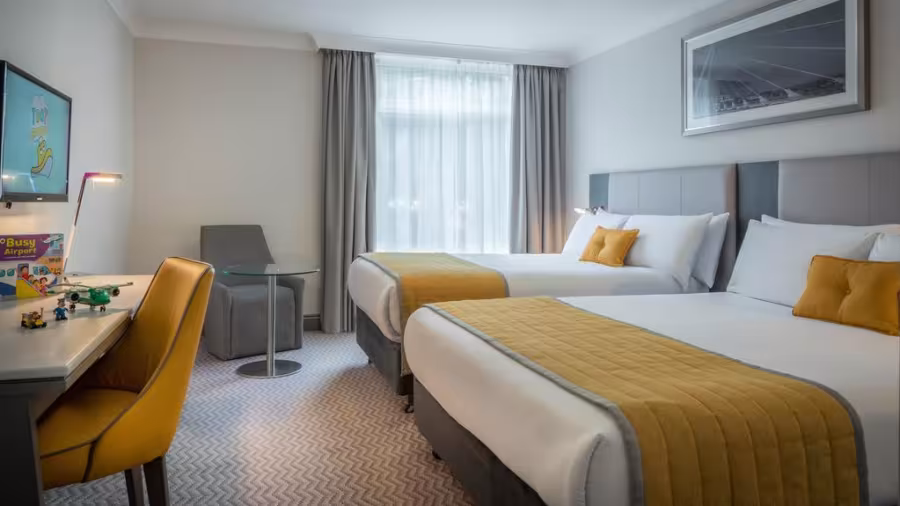 Located in the grounds of Dublin Airport, this 4-star Maldron hotel operates a free 24-hour shuttle service to and from the airport terminal for guests. It is within 3 minutes' walk of the terminals, and offers modern air-conditioned rooms, a fine restaurant and secure private parking. Bright and spacious, each room at the Maldron Hotel Dublin Airport includes crisp, cotton duvets and a modern private bathroom with fluffy towels and luxury toiletries. Guests can relax in the room with free tea and coffee, free WiFi and a TV. Grain & Grill Restaurant serves European food in contemporary surroundings. It offers a full buffet breakfast and à la carte dinner menu. Grab-and-go breakfasts are also available for those in a hurry.
