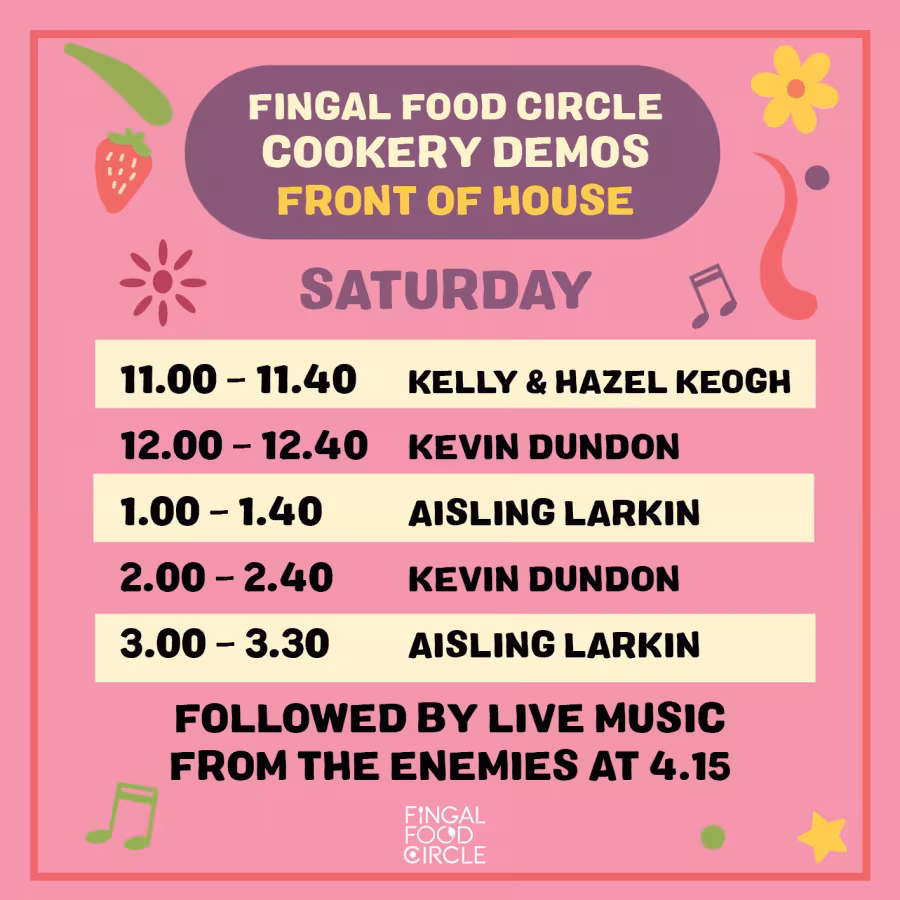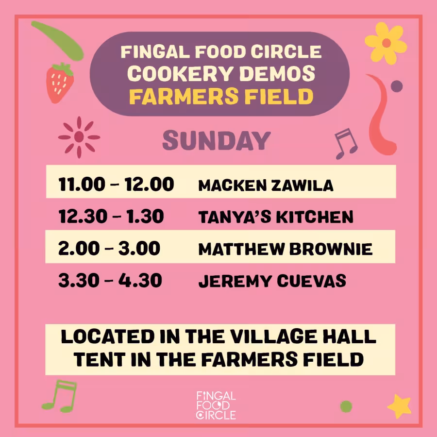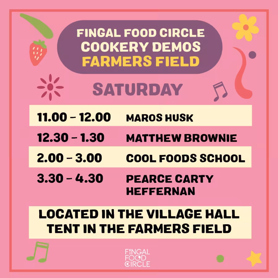 - Fingal Food Circle: Explore a vibrant market of locally sourced produce from Dublin’s coast and fields. Sample and shop artisan cheeses, seafood, fresh fruit and veg, baked goods, and more, plus enjoy live cookery demos from top chefs including Declan McManus of the King Sitric restaurant, Howth