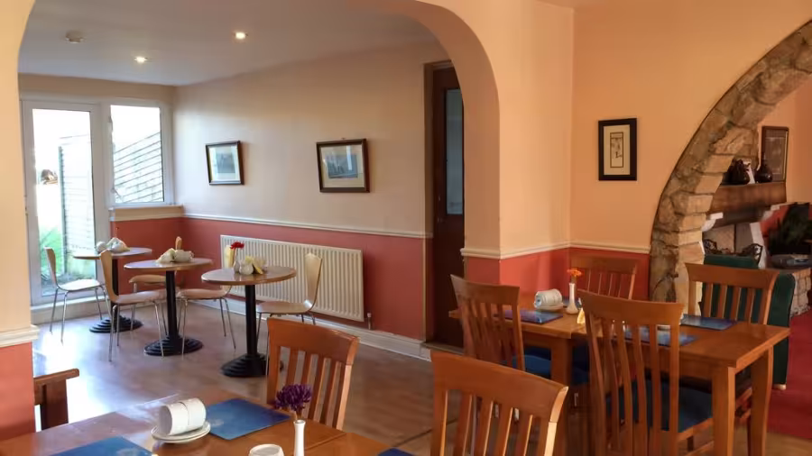 Is féidir bricfeasta Eorpach a ithe sa seomra bia éadrom agus aerúil. In éineacht le brioscaí, tá tae agus caife féinseirbhíse ar fáil sa seomra bia.