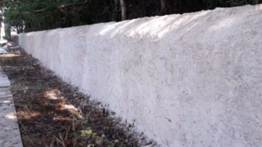 Is éard a dúirt Ailtire an Chontae, Fionnuala May: "Tá sé i gceist againn obair chaomhnaithe a dhéanamh ar an mballa ar fad, mar sin, ós rud é gurb í seo an chéad chéim, beidh an fhoireann chaomhnaithe ag obair leis an gconraitheoir chun an meascán ceart d'ábhar cuí a fháil a éireoidh níos séimhe ó thaobh dath le himeacht ama agus is fearr a thiocfaidh leis an mbailchríoch atá ann ón gcéad lá riamh. Tá iarrtha ar an gconraitheoir samplaí a chur ar fáil de bhailchríocha leis an rindreáil aoil, sliogán agus cloch a chur ar fáil chun go mbeidh an fhoireann chaomhnaithe ábalta athbhreithniú a dhéanamh orthu agus muid ag iarraidh an bhailchríoch is fearr is féidir a fháil do bhalla an eastáit."