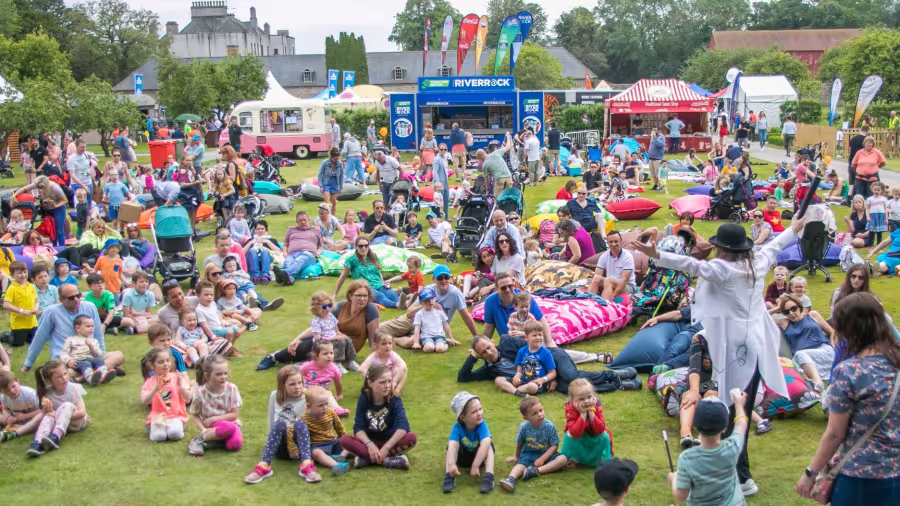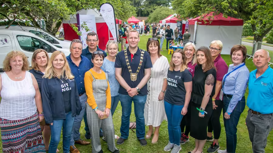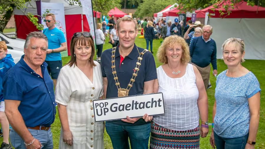 Flavours of Fingal 2019 Horses in Farmer's Field Children's Workshop Bouncing Castles Mayor with Council staff pop-up gaeltacht Sheep Children with the entertainer. Child with a calf Children holding bunny rabbits Fingal Mayor and Interim CEO getting into the spirt of things Previous item Next item