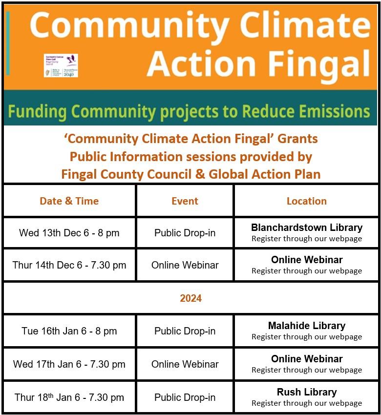 Director of Services of Fingal County Council David Storey commented “We welcome groups to find out more about ‘Community Climate Action Fingal’ and we commit to supporting you in every way possible to deliver quality climate action projects.”