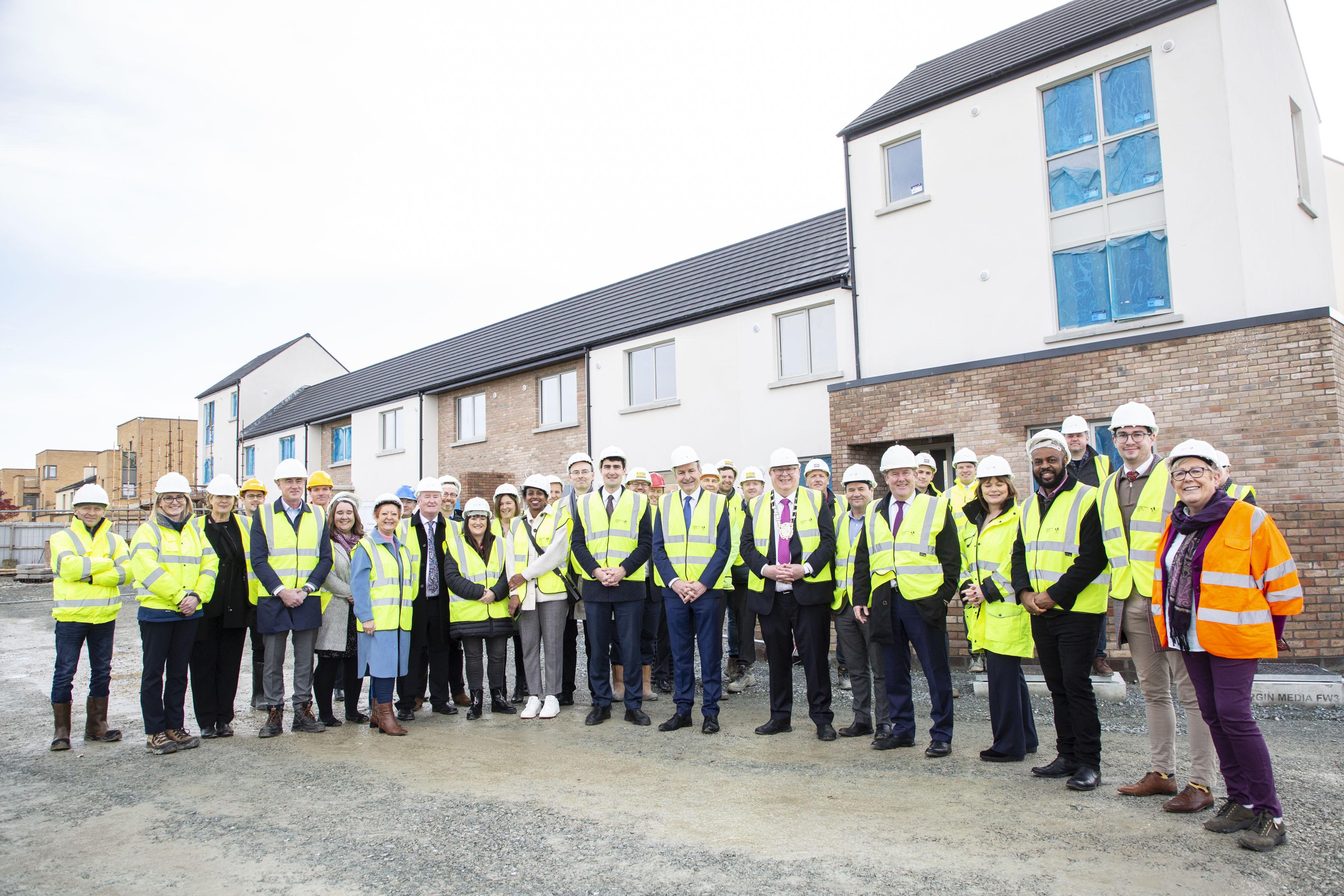 Viewing the development, Taoiseach Micheál Martin said: “The delivery of social housing to meet the current and future needs of all our citizens continues to be a challenge in the current climate. That is why I am delighted to be able to see an exciting scheme like this moving ahead at pace, particularly as it helping to provide homes in one of the country’s fastest growing population areas and the fact that these new homes will help minimise energy consumption and reduce carbon emissions.”